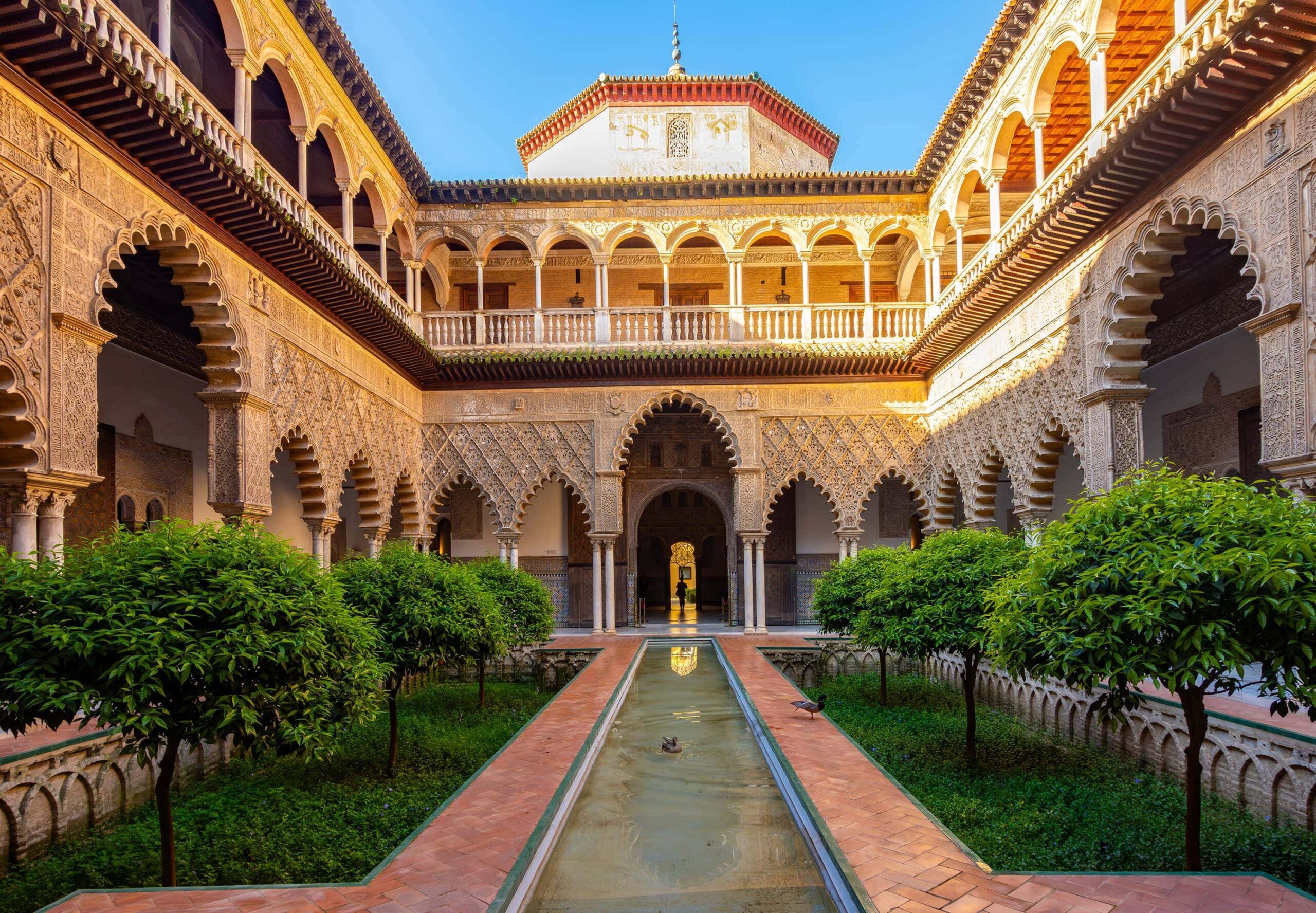 Le Real Alcázar révèle l’âme la plus raffinée de Séville, dans un langage architectural d’une grande délicatesse. Ses décors entremêlent héritages mudéjars, gothiques et Renaissance avec une rare fluidité.Chaque motif, chaque texture semble pensé comme une œuvre en soi. Les jardins prolongent cette impression de perfection maîtrisée. Un ensemble d’une harmonie presque intemporelle.